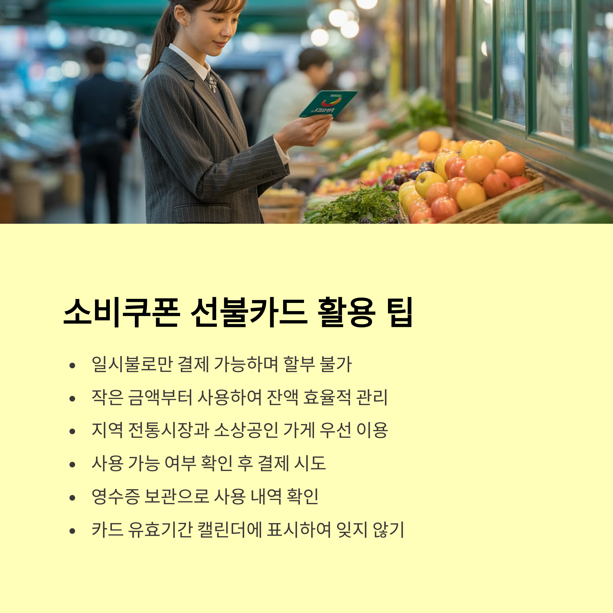이 선불카드는 일정 금액의 소비쿠폰이 충전된 형태로 제공되며, 등록된 소상공인 매장에서 자유롭게 사용할 수 있어요.