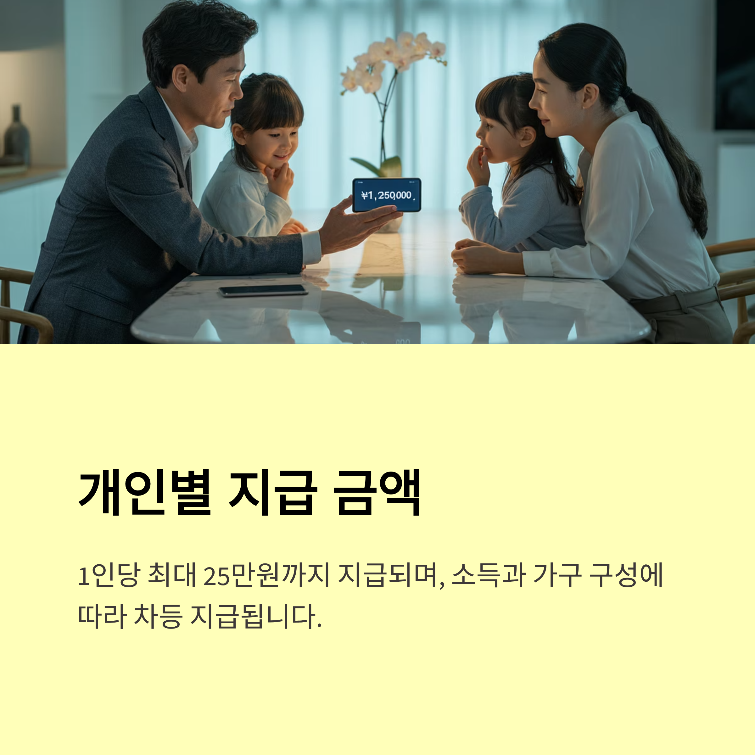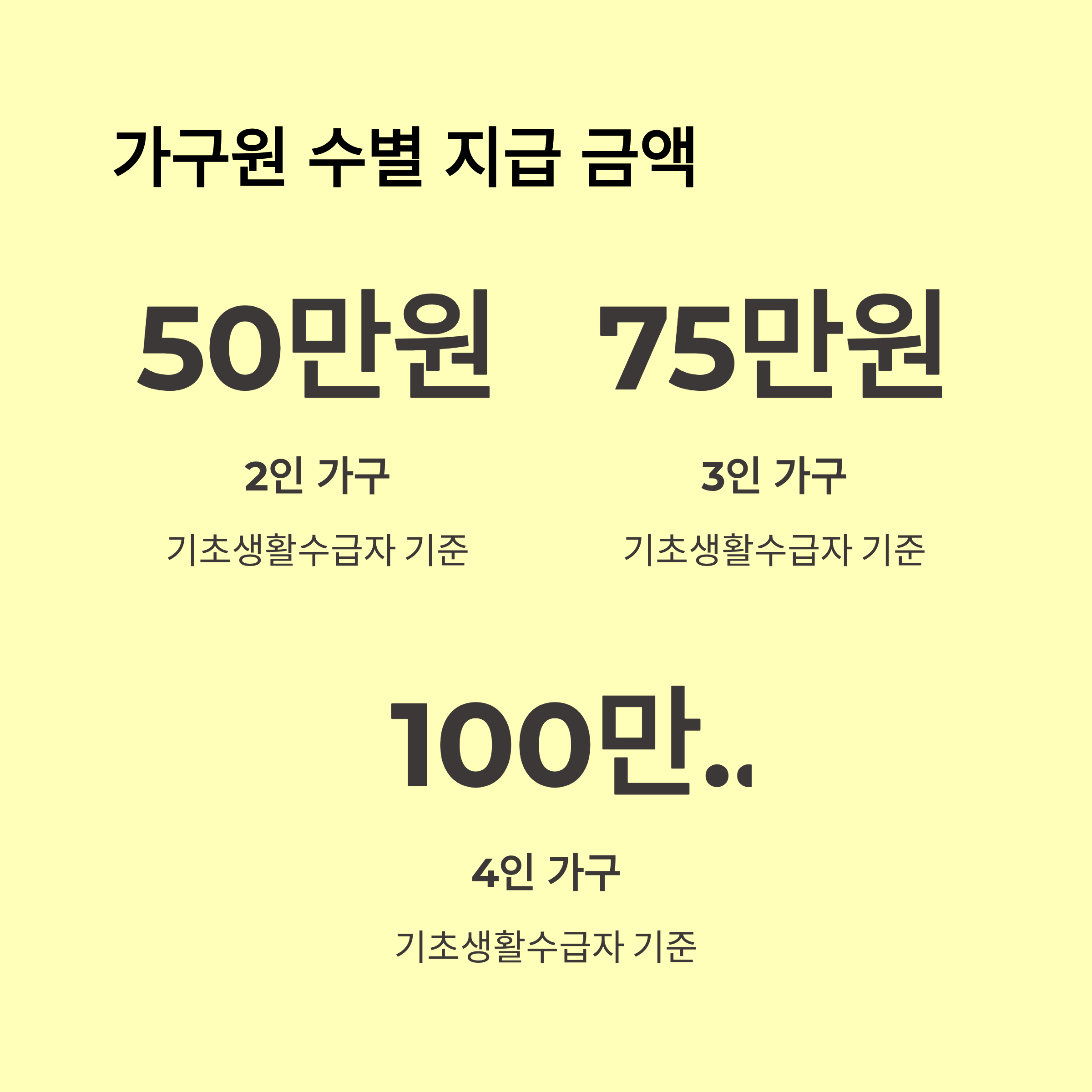 | 2~3인 가구 | 25~50만 원 | 지역화폐/지급 계좌 |