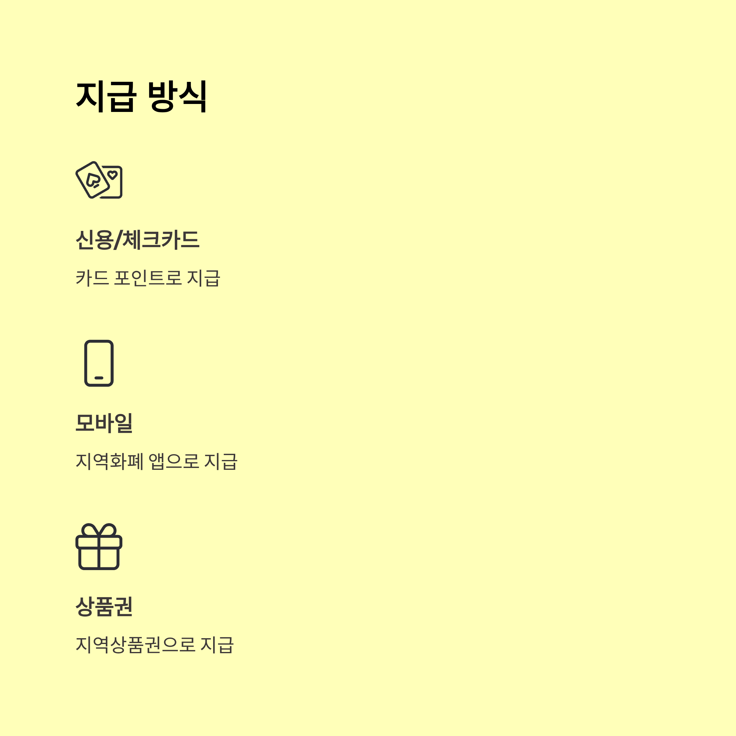 A3. 대부분 지역화폐, 선불카드, 포인트 등으로 지급돼요. 계좌이체는 극히 일부예요.