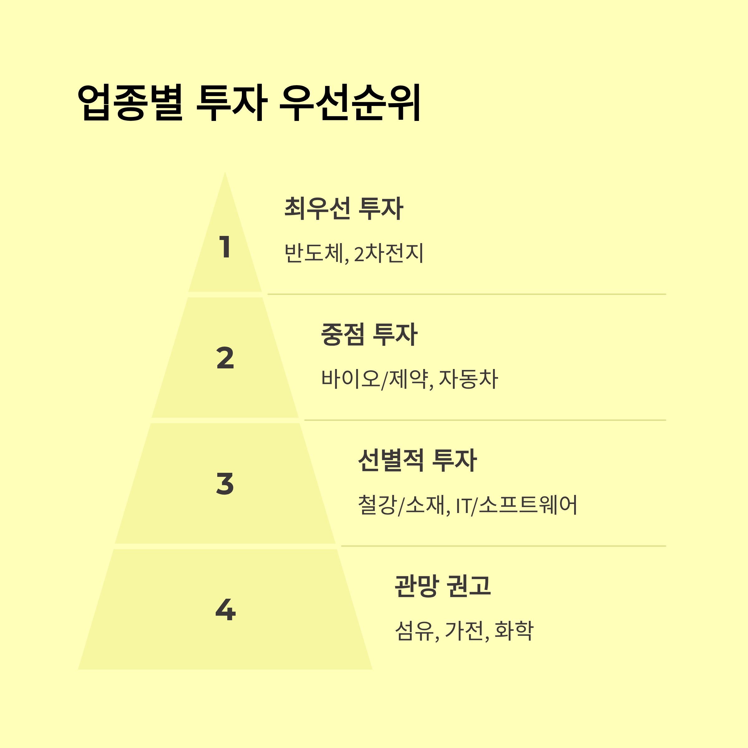 A5. 2차전지, 반도체, 자율주행, 농업 분야가 유력해요.