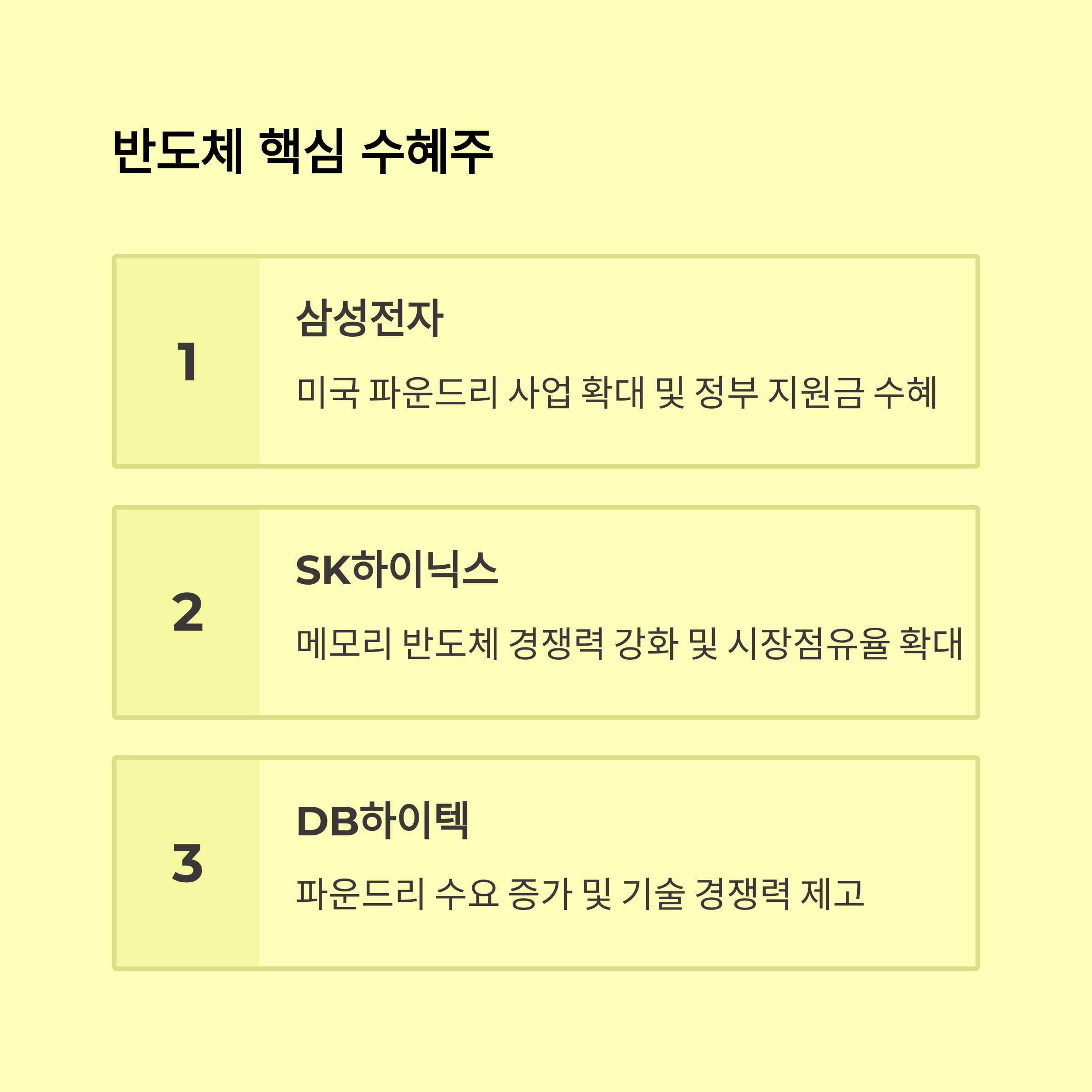 대표적으로 SK하이닉스, 삼성전자, LG에너지솔루션은 미국 내 추가 투자와 연계돼 있어, 세제 혜택, 공급망 안정성 측면에서 유리한 위치를 선점하게 됐어요.